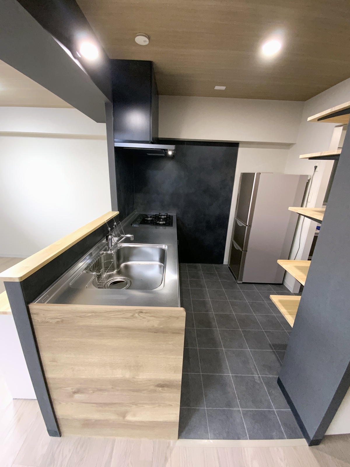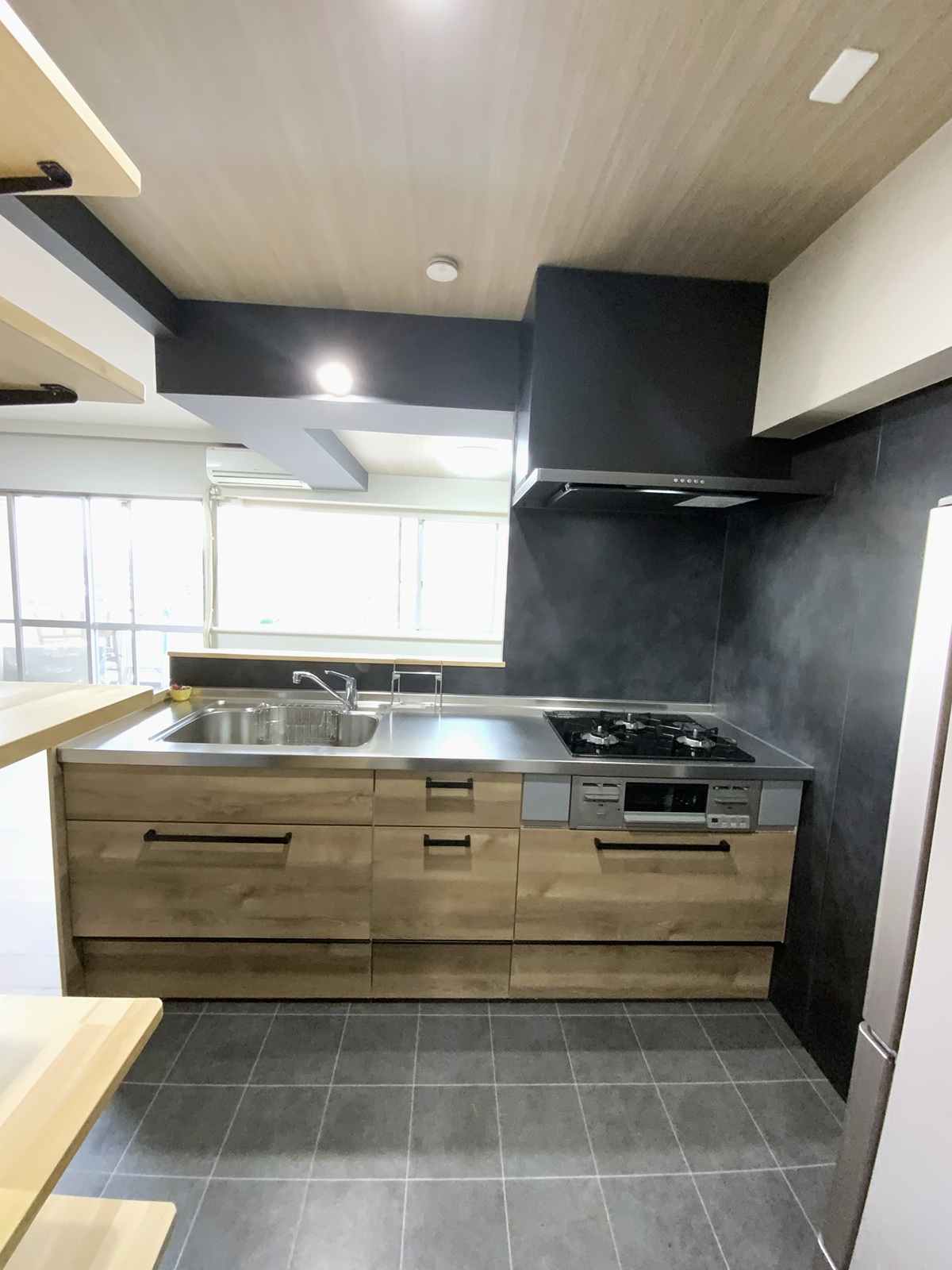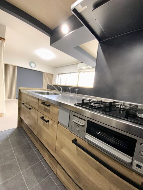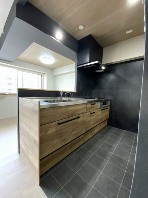 吊戸棚を撤去し、ブラックのアクセントが効いたジャパンディなキッチンへ。